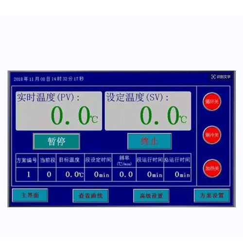 ●上位機:本設備配備上位機,可同步下位機操作,極大的方便客戶修改程序,監(jiān)控實時溫度